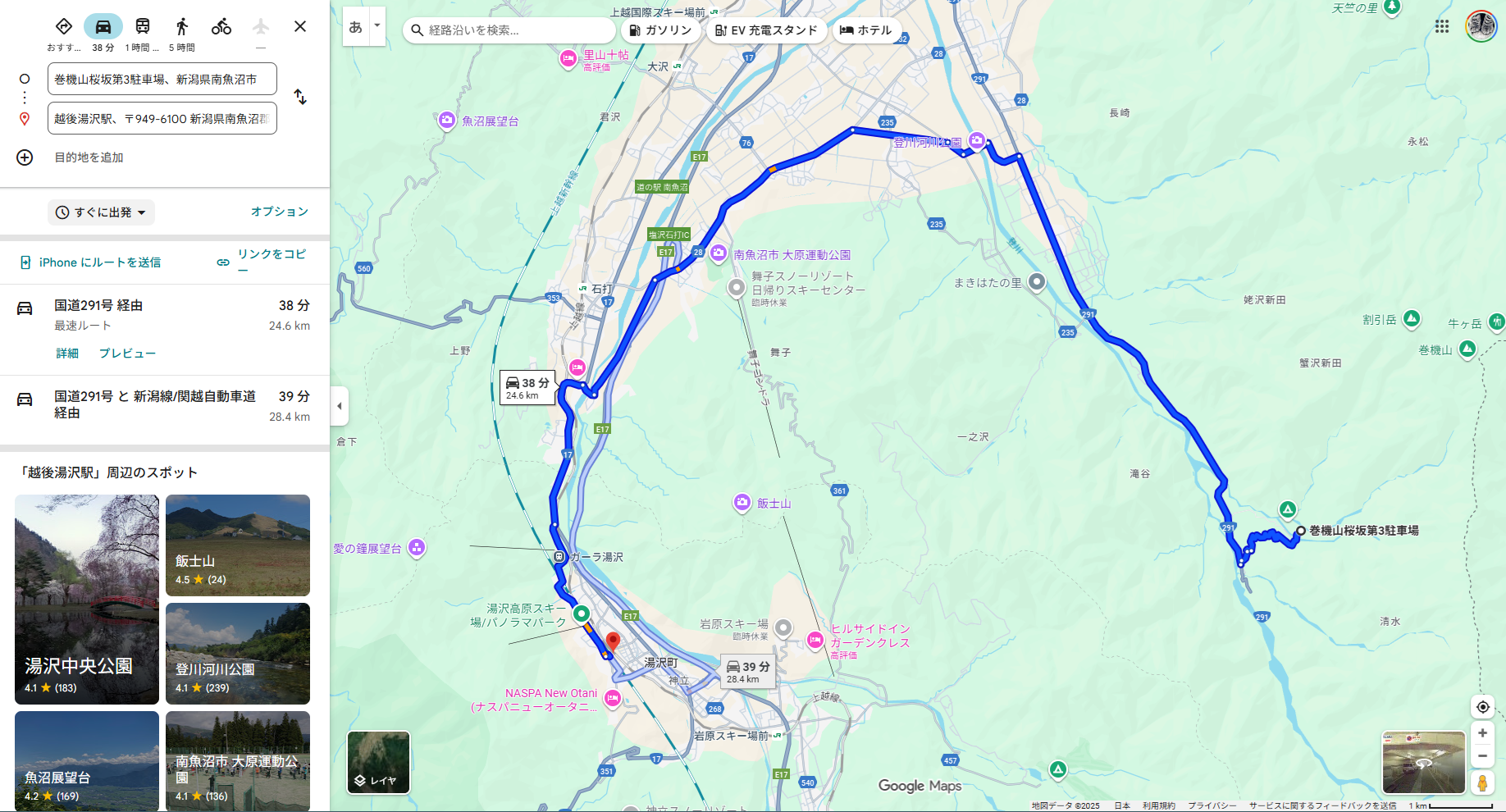 🔷越後湯沢駅 ~ 巻機山桜坂駐車場