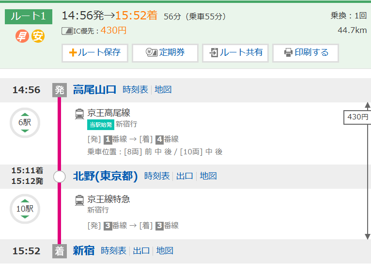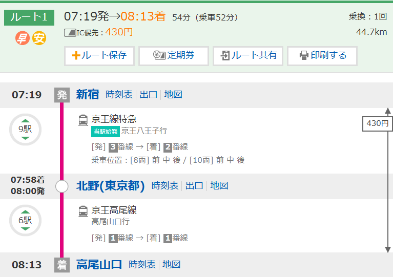 | 12:43 | 12:43 | 高尾山ケーブル高尾山駅 |