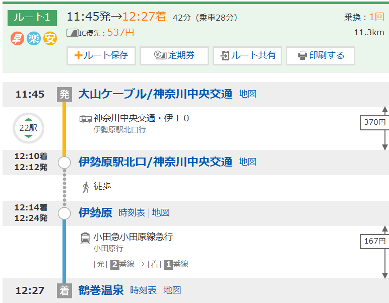 | 11:41 | **:** | 大山ケーブルバス停 |