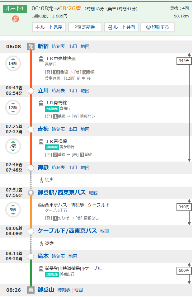 | **:** | 08:30 | 御岳山ケーブル駅 |