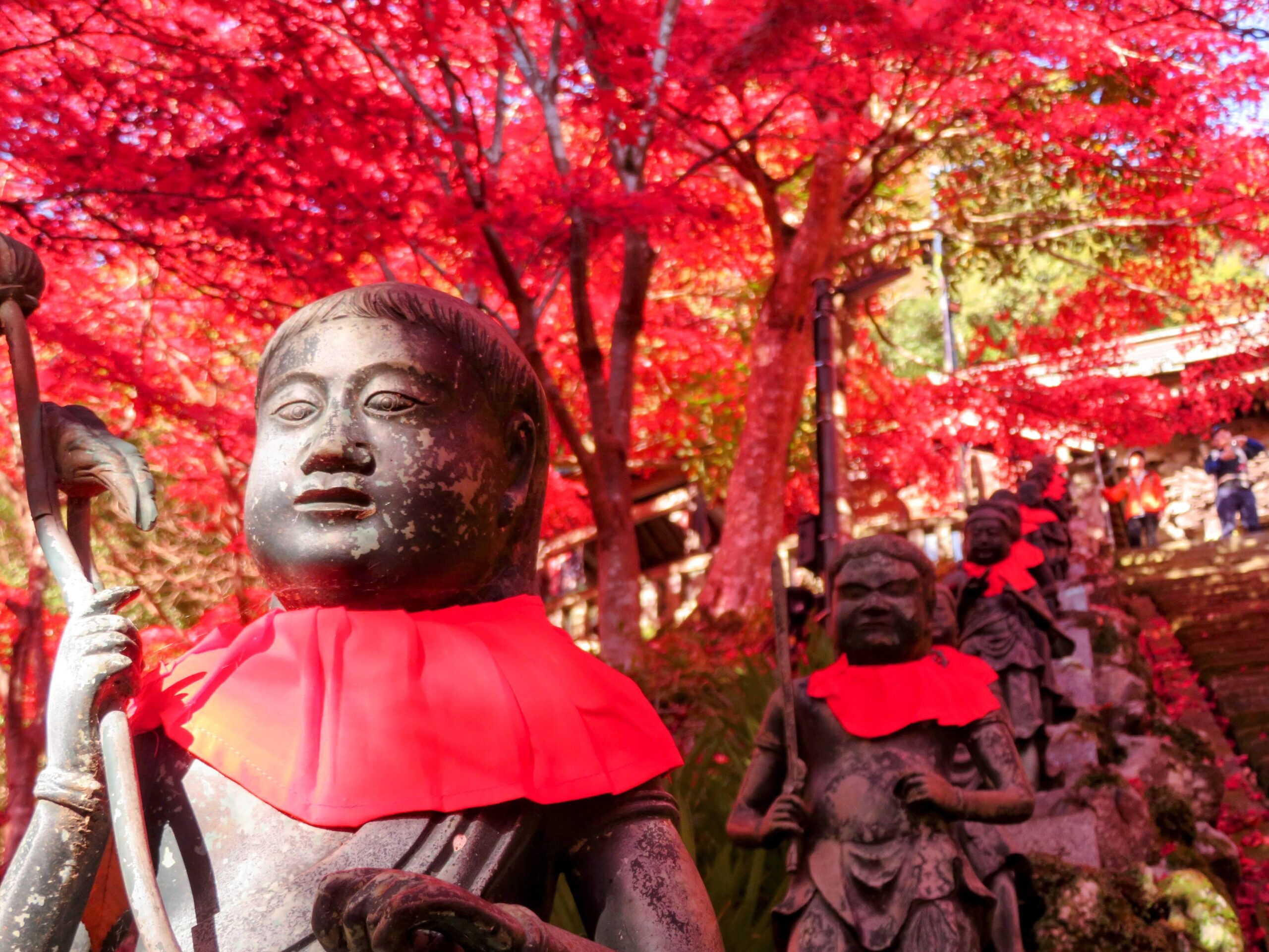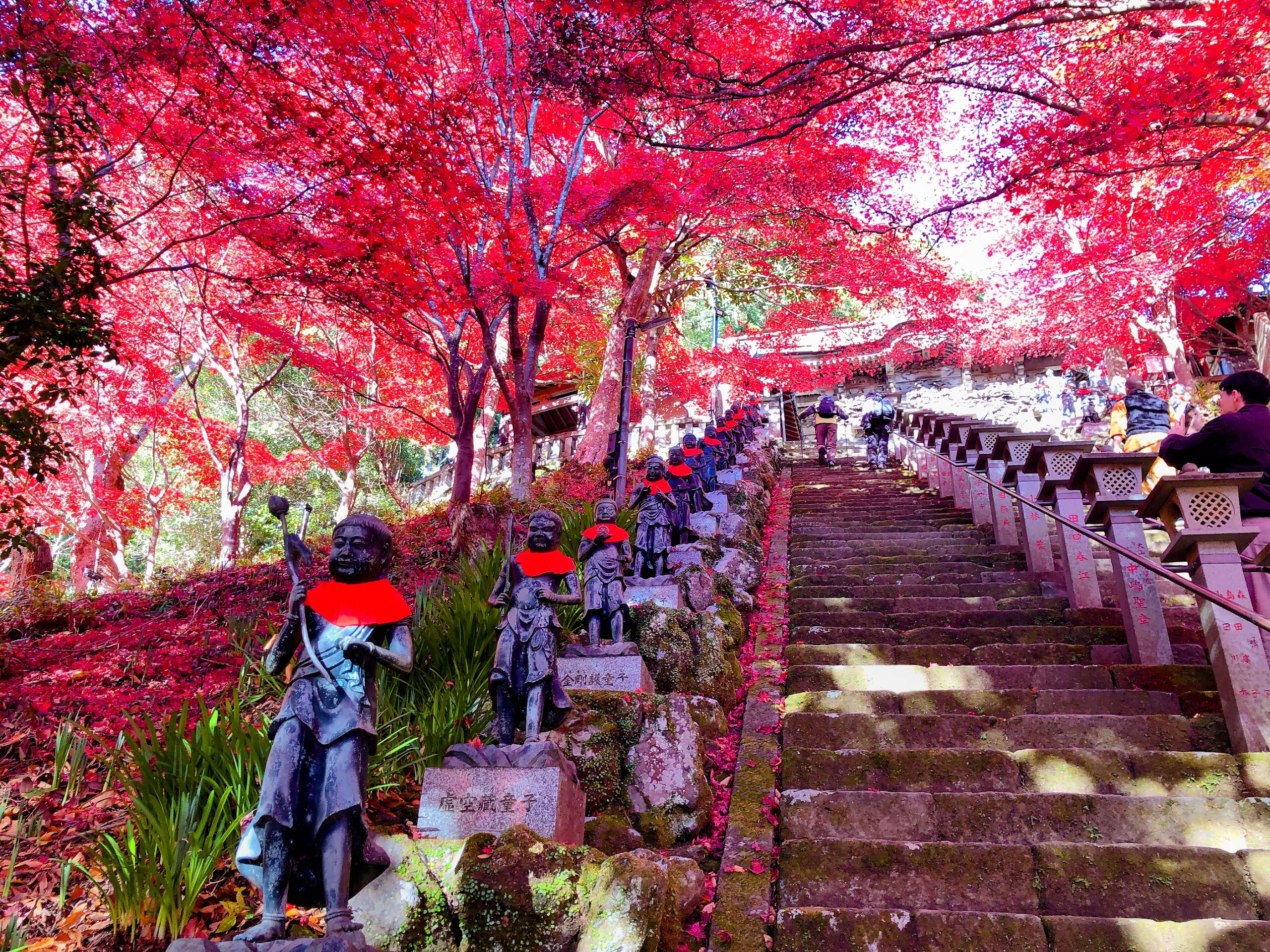 女坂の途中にある「大山寺」のもみじが真っ赤に色づき、とても綺麗でした。