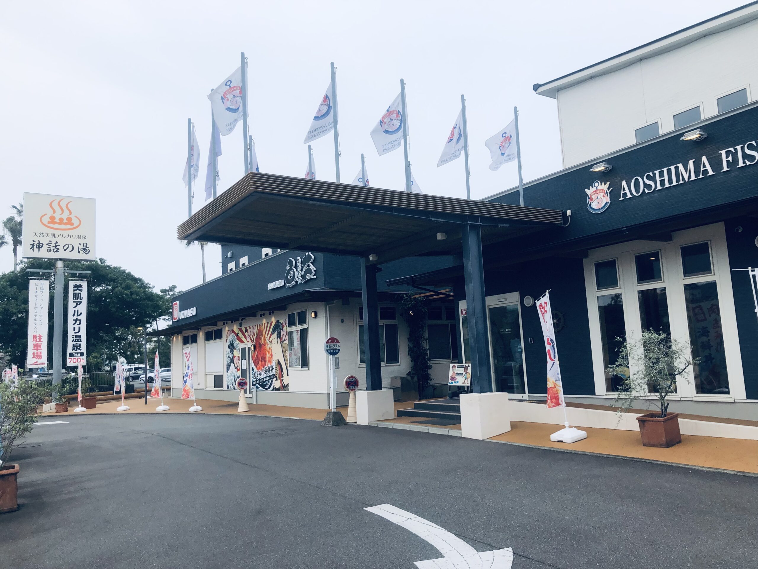 黄色いポストと橋、そして青島の風景がとても良い雰囲気でした。波状の奇岩「鬼の洗濯板」を眺めたり、青島神社の奥まで歩いて散策することもできます。最後は、近くにある青島ホステルの「神話の湯」でゆっくりと疲れを癒しました。