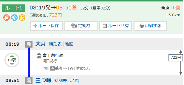 | **:** | 08:54 | 三つ峠駅 |