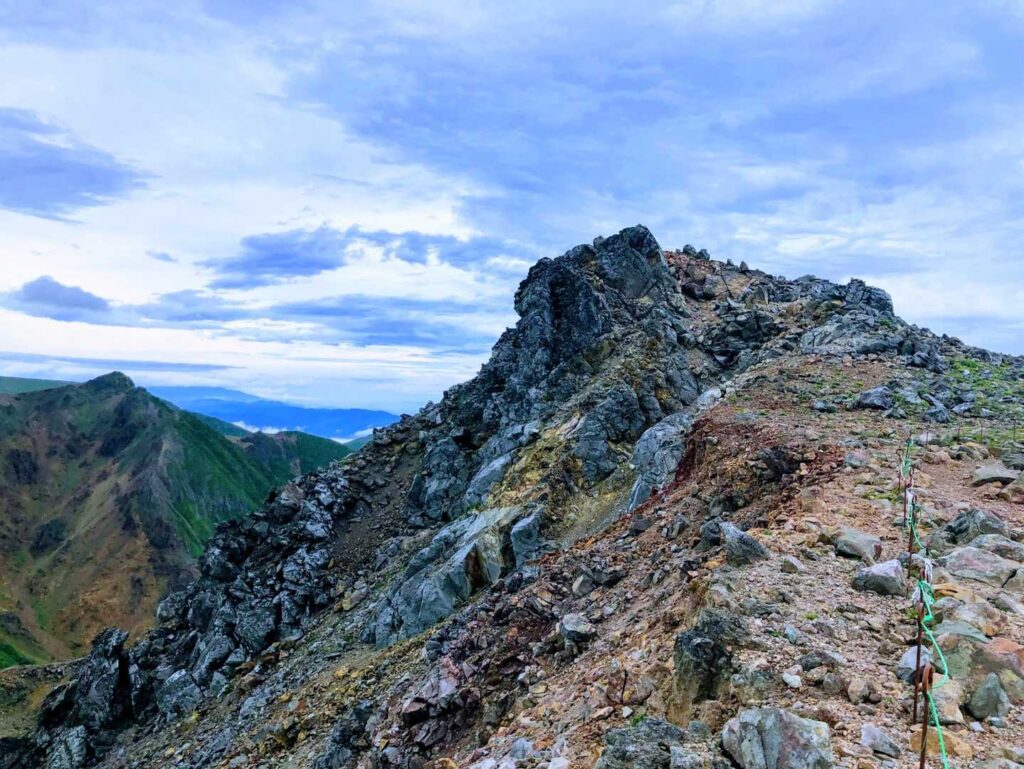 隣に見える朝日岳がこれもまたカッコよく明日登るのが楽しみです!