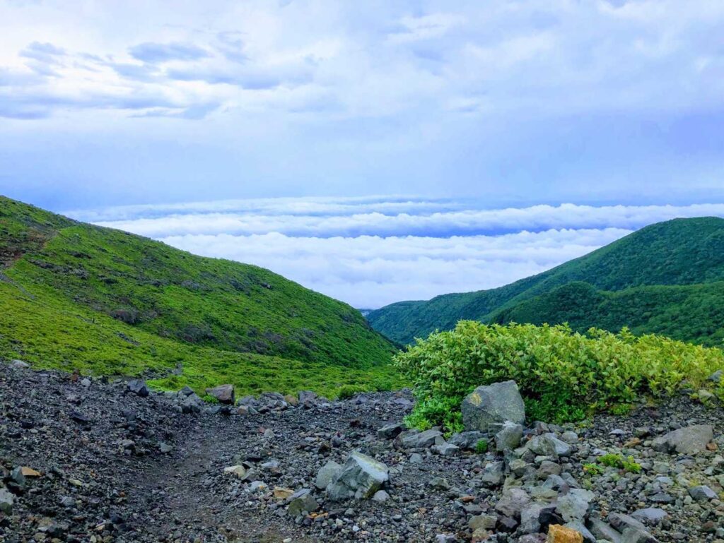 茶臼岳は最初から最後まで登りやすい山でした。急登は最後の少しだけです。時間も短めで登れるのでオススメです。茶臼岳の山頂は荒々しい姿でカッコよく、周りを一周回りましたが、裏側?の無間地獄というところは凄い音とともに煙がててました。牛ヶ首まで行くコースはとても良かったので、時間があれば一周してみてください。
