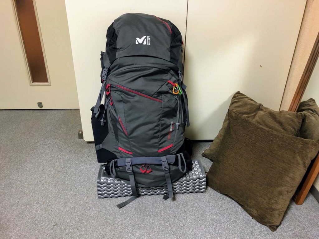 食糧とお酒でリュックがとても重い、、、