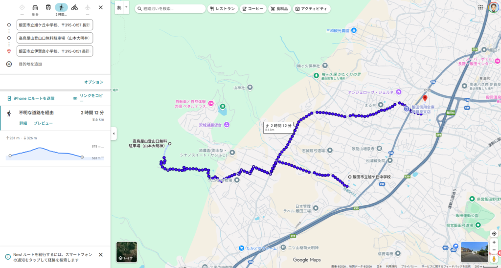 🔷旭ヶ丘中学校 ~ 高鳥屋山登山口 ~ 伊賀良小学校