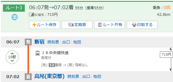 ※高尾駅から乗換乗車する中央本線はいつも混んでいるため、高尾駅に早く到着するように移動しました。