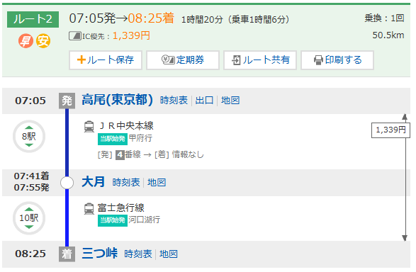 | **:** | 08:32 | 三つ峠駅 |