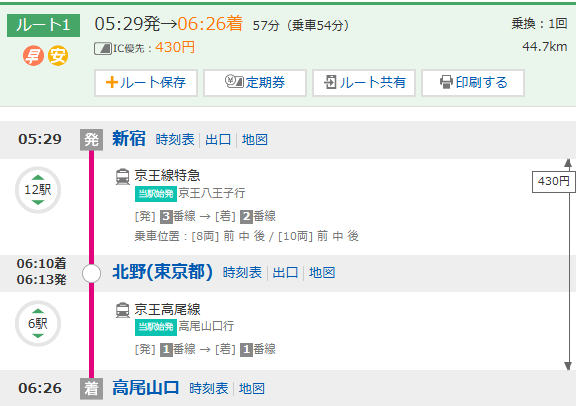 | **:** | 06:32 | 高尾山口駅 |