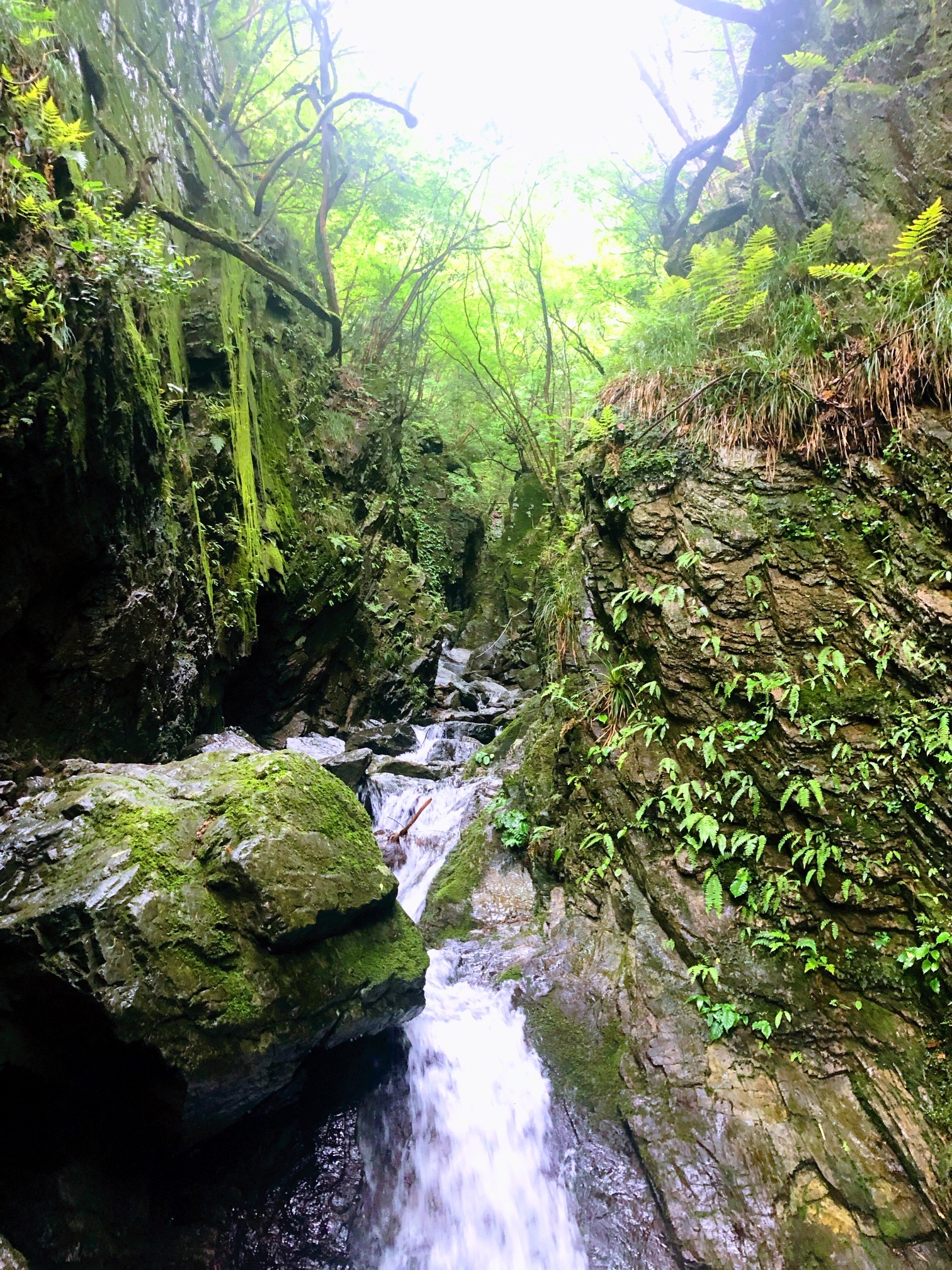 川の中にある石の上をぴょんぴょんと飛び越えて川を渡ったり、川の両側が岩場になっているギリギリのところを岩にしがみついて歩いたりとかなり怖かったです。