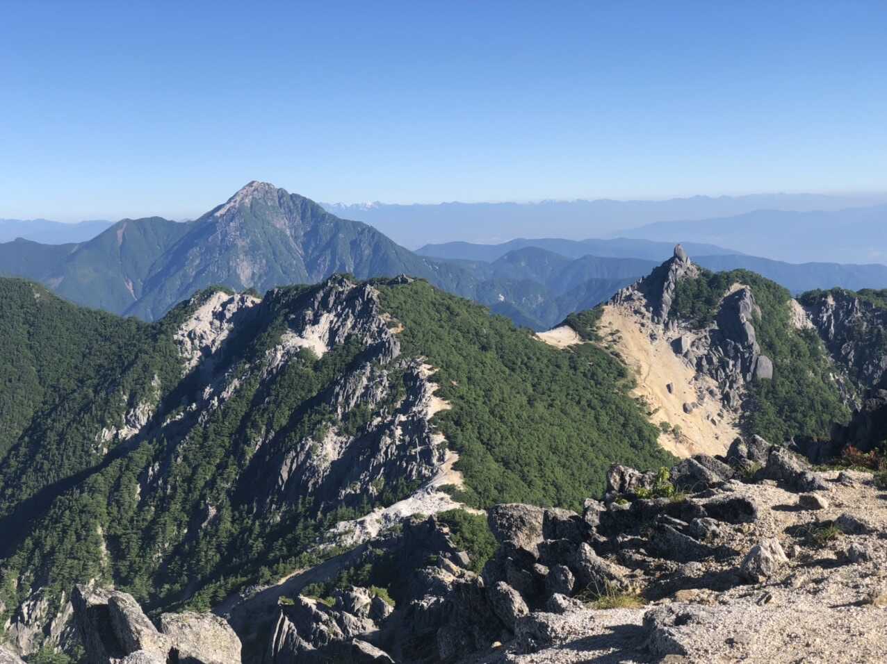 続いて三つ目の地蔵岳へ向かいます 稜線を進んで右に下ると地蔵岳です 奥の甲斐駒ヶ岳がかっこいい この写真が今回のベストショット
