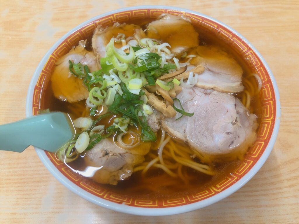 私が毎回注文するのは「大盛チャーシュー麺」です。スープはかなりあっさりとした醤油味で、ほっとするような昔懐かしい味わい。麺は他の3店舗のように柔らかいタイプではなく、少しもちっとした食感で、王道の中華そばといった印象です。大盛の麺の量はとても多く、大食いの方には嬉しい一杯。4店舗の中でも麺の量は一番多いように感じます。