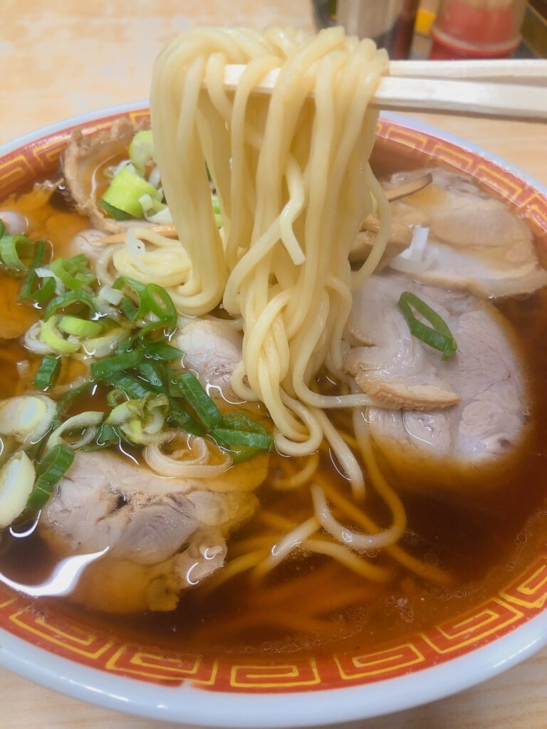 最大の特徴は、非常に柔らかい麺です。初めて食べる方は「麺が伸びてしまっているのでは?」と勘違いしてしまうかもしれませんが、これは飯田ラーメンならではの個性。柔らかい麺が、出汁のきいた醤油スープと絶妙に絡み合い、唯一無二の美味しさを生み出しています。